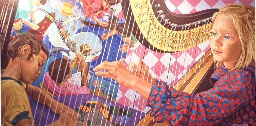 Dreams of Icarus 1991 7 ft. X 24 ft. and 7' X 8 ft. Ronald McNair ES, 13881 Hopkins Road, Germantown, MD [Acrylic paint on stretched canvas panels]