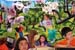 The Orchards School Mural (commissioned by the Washington State Arts Commission) depicts students and teachers interacting and engaged in educational activities in an imaginary landscape of apple and plum orchards, reflecting the name of the school and the Vancouver area's farming history. The mural covers three walls of the lobby and extends partway up the staircases.