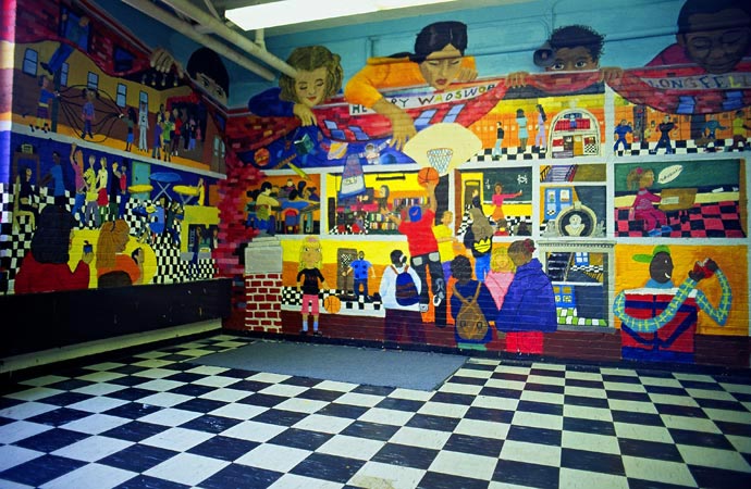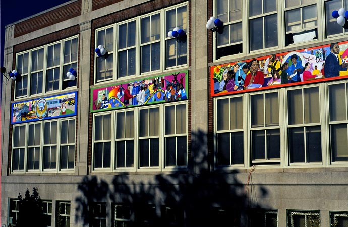 4 mural friezes each measuring 4' X 20' Phillis Wheatley Middle School, Roxbury, MA [Acrylic on MDO]