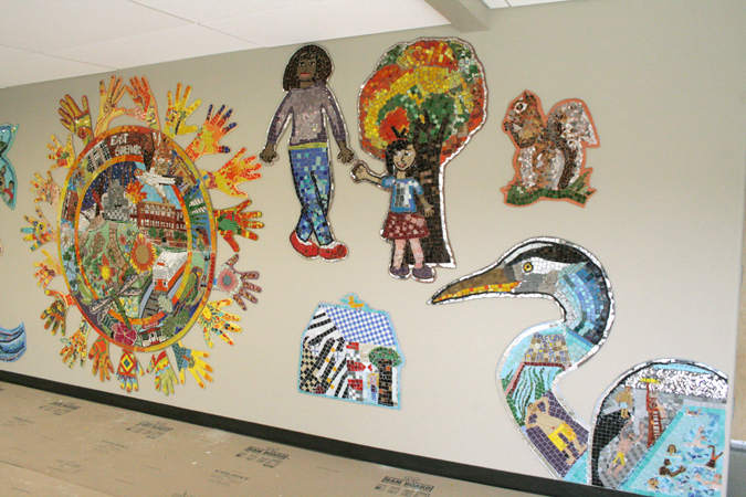 8 ft. X 22 ft. East Somerville Community School, Somerville, MA [Glass mosaic on hardiebacker board]