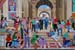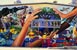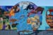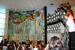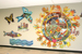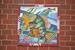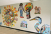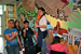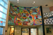 Unveiling of the mural in the lobby. Students working on the mural before installation. Mural detail. Mural detail.