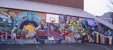 "Looking In On Learning" was designed by middle school students during an artist residency. It was painted by all students in the school. The primary image is of students peeling away the facade of the school to reveal a cutaway of students engaged in learning activities.
