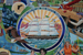 mosaic panels 32 inches square and painted mural 20 ft. X 16ft. Guilmette School Complex (Lawrence MA) [mixed media- Glass mosaic and acrylic paint]