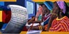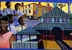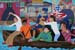 8th grade students working on the mural panels in art room.