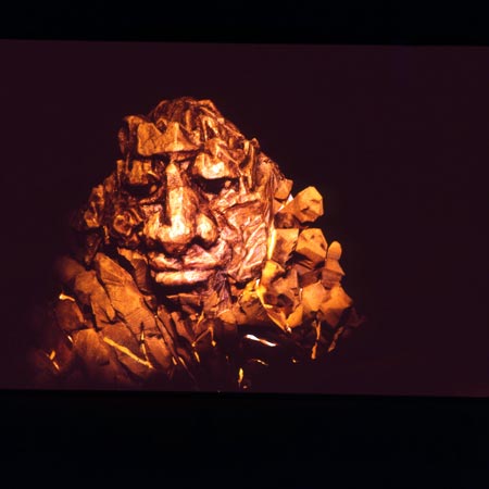 The Gold Troll and the Gold Mountain were puppets commissioned by Boston's Museum of Science for a special theater piece that was part of an exhibit about gold. The Gold Mountain appeared at the end of the play and had interior lights that transformed the puppet from a regular rock mountain to one that contained gold. The Gold Troll was a mischievous character who embodied the rapacious history gold has played in human history.
