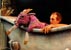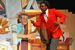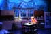 The father is forced to come to terms with his "inner child" and is entertained by the animals. The set featured a large scale bath tub and the water effects were created with hand painted silk.