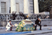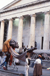 "Sanctuary: the Spirit of Harriet Tubman" combines narratives of flights to freedom during the 1850's in an account of Tubman's Underground Railway journeys and the contemporary Sanctuary movement from Central America. The first act tells the story of Harriet Tubman and the set is dominated by a giant puppet image of Tubman with an outstretched hand. During the second act, which tells the stories of Guatemalan refugees who find sanctuary in US churches in the 1980's, the Tubman puppet transforms into a Guatemalan refugee. The play, which tries to draw connections between the Underground Railway of the pre Civil War era and the contemporary sanctuary movement, toured nationally during the 1980's. In addition the puppet of Tubman was part of a street pageant that was performed in Philadelphia in front of the first National Treasury building, as an alternative celebration of the 200th anniversary of the US Constitution. The columns of the Treasury Building became the backdrop for the street performances about people left out of the constitution, including People of Color, Women, Native Americans and others.